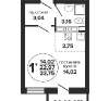 Квартира общей площадью 44 кв.м + длинный балкон 7 кв.м.